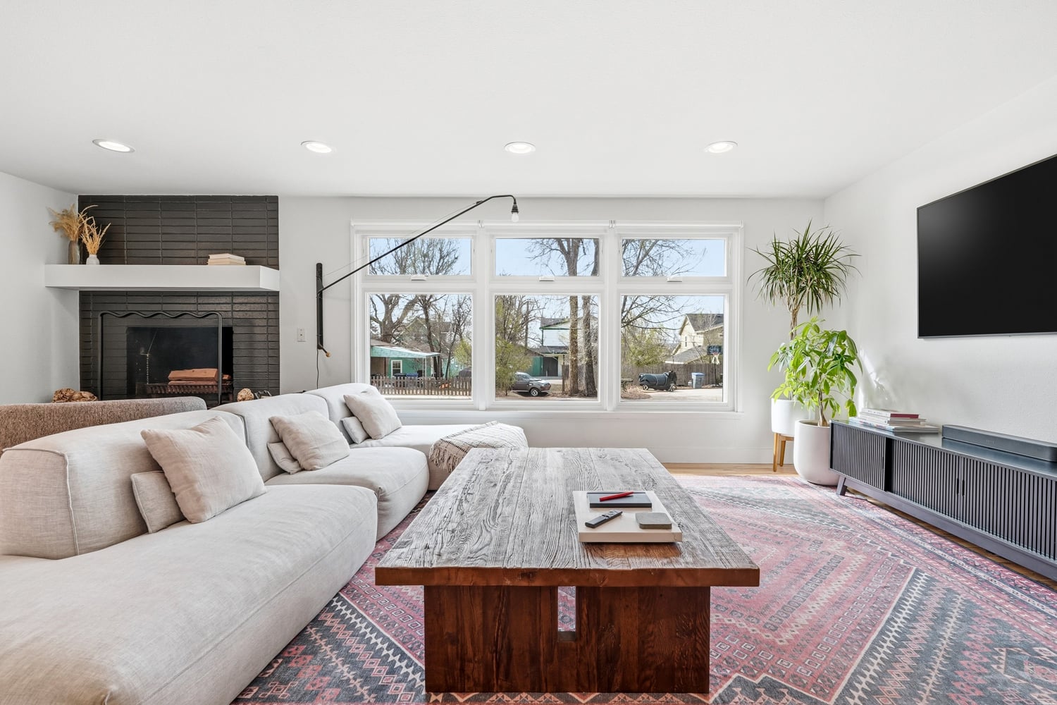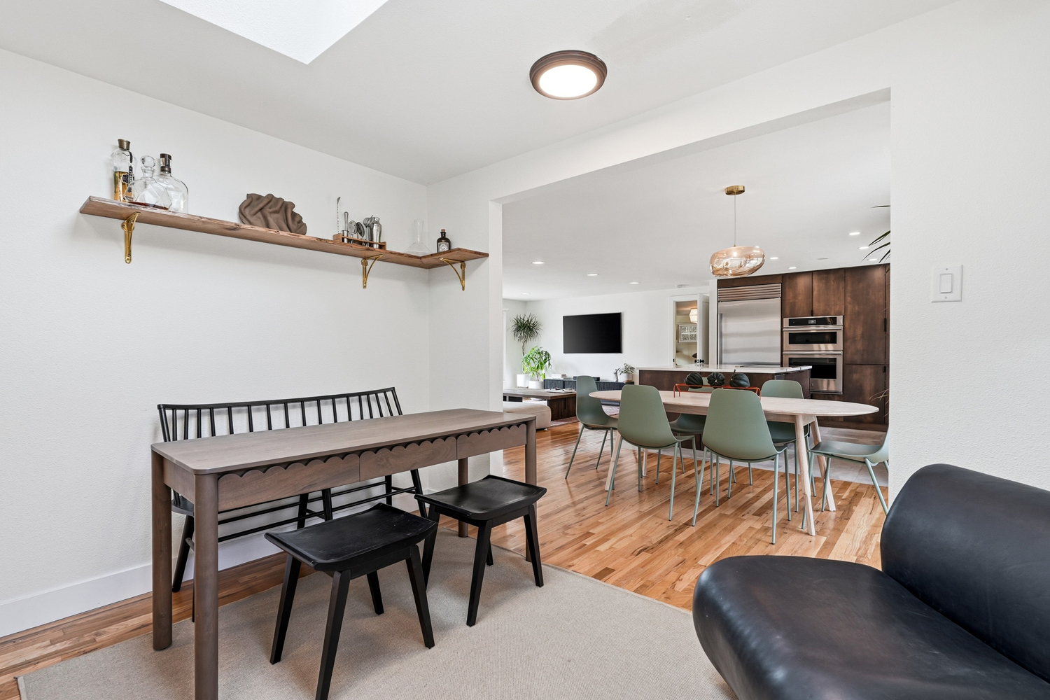 Abundant natural light from large windows and skylights
