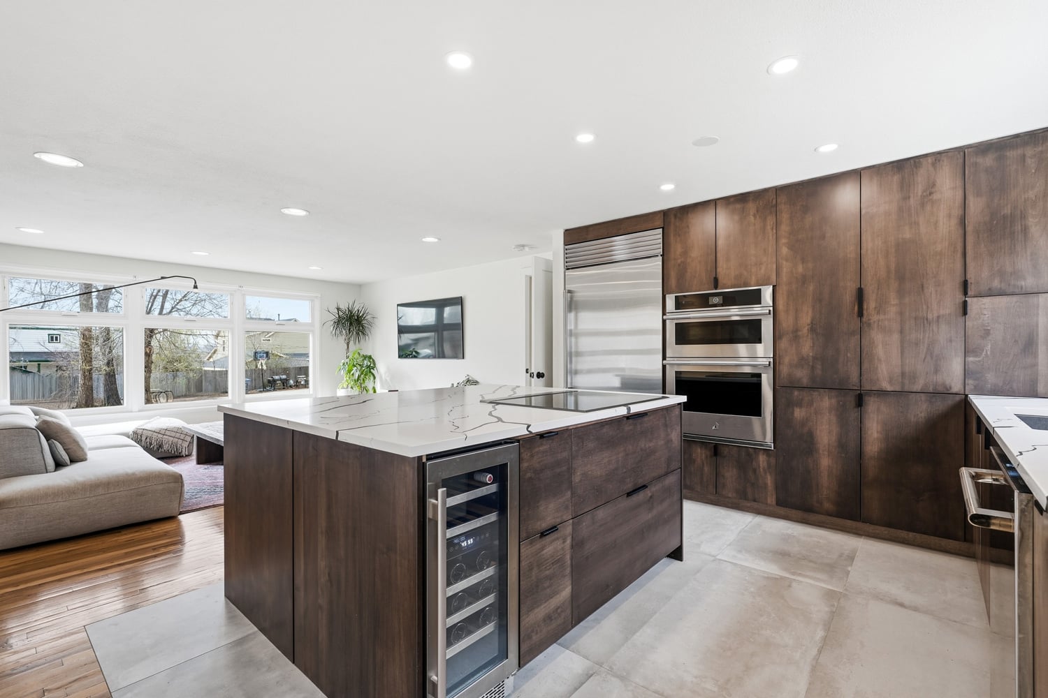 Since 2020, the home and yard have been comprehensively remodeled and updated, including all major systems, creating a truly turnkey property. The transformation is anchored on a $150K+ custom kitchen with sleek cabinetry, statement countertops and top-tier appliances, including a Sub-Zero fridge, JennAir oven/microwave combo, induction stove, and dual-zone wine fridge. The open layout lives beautifully, with sunlight pouring through expansive windows, clean architectural lines and a seamless flow that invites both lively gatherings and quiet mornings at home.