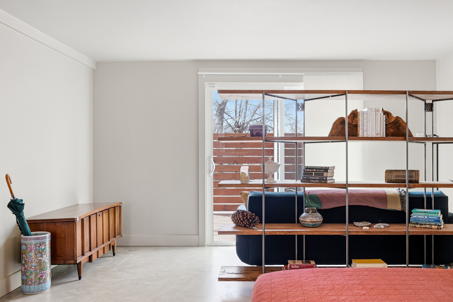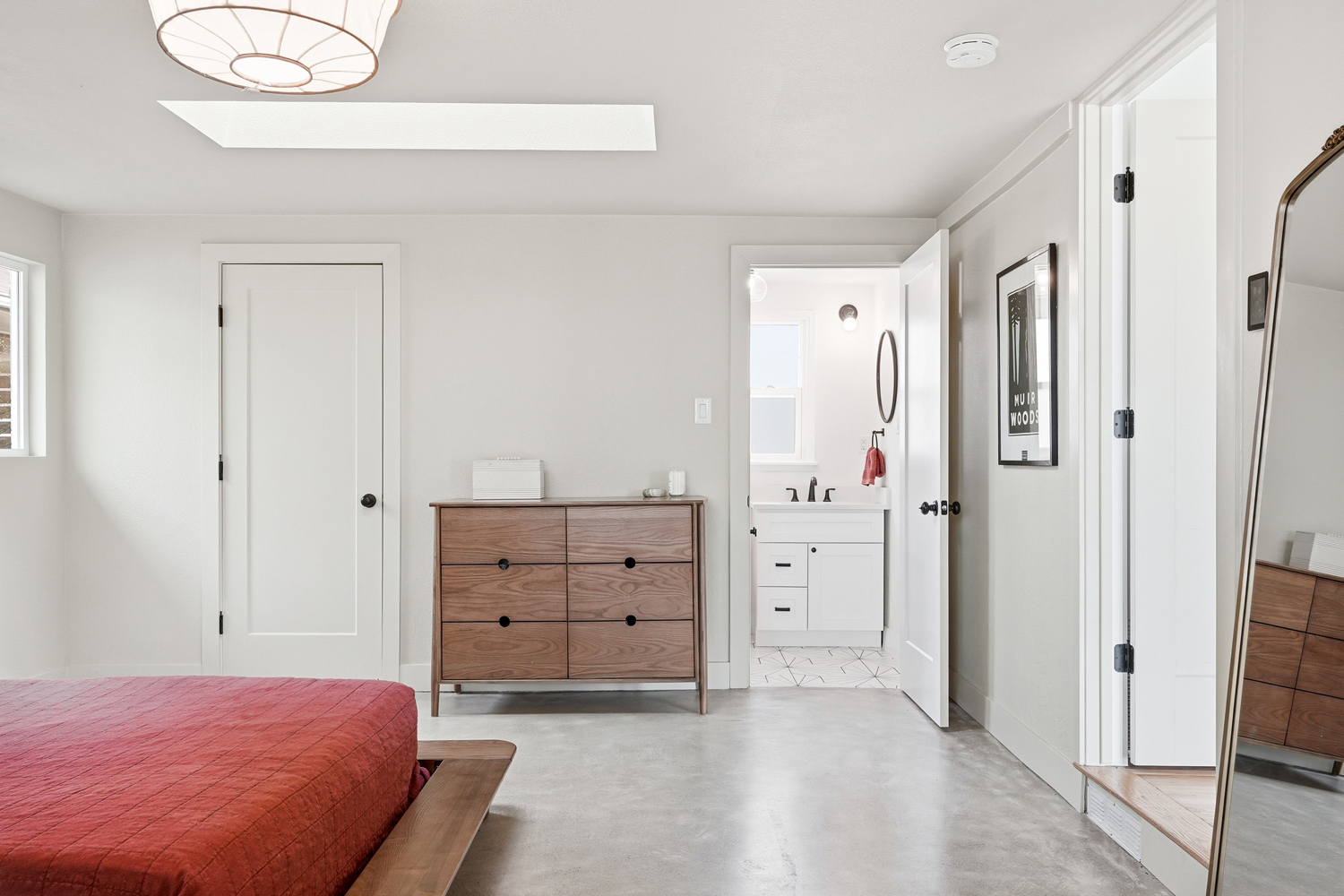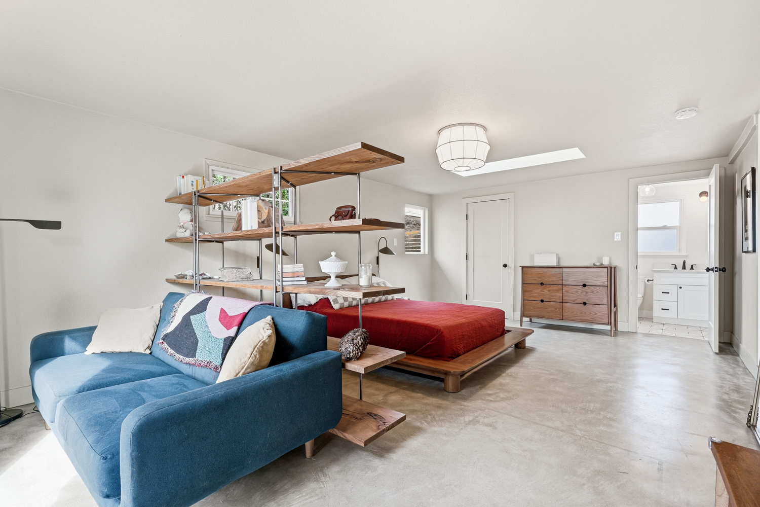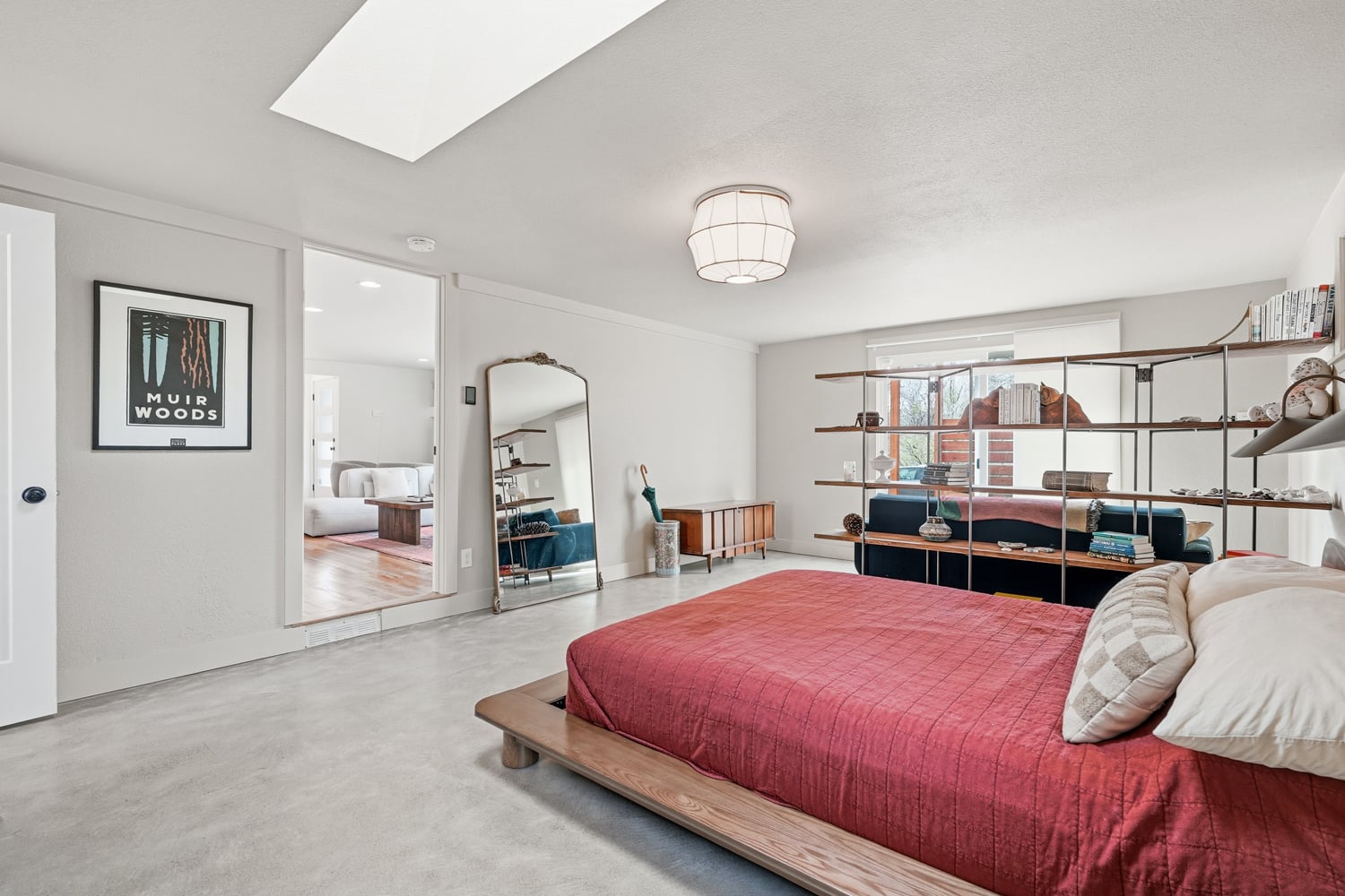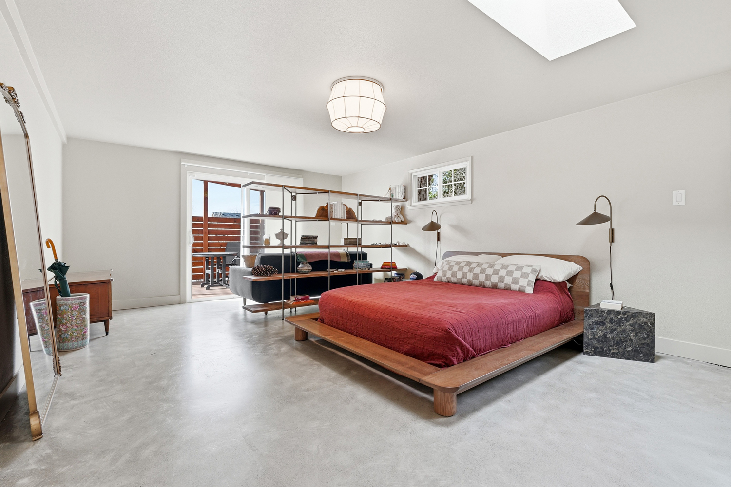 The primary suite feels like a retreat, with newly installed concrete floors and radiant in-floor heat delivering a subtle, grounded warmth underfoot. Multiple access points blur the line between indoors and out, creating an easy, natural connection to the surrounding landscape.