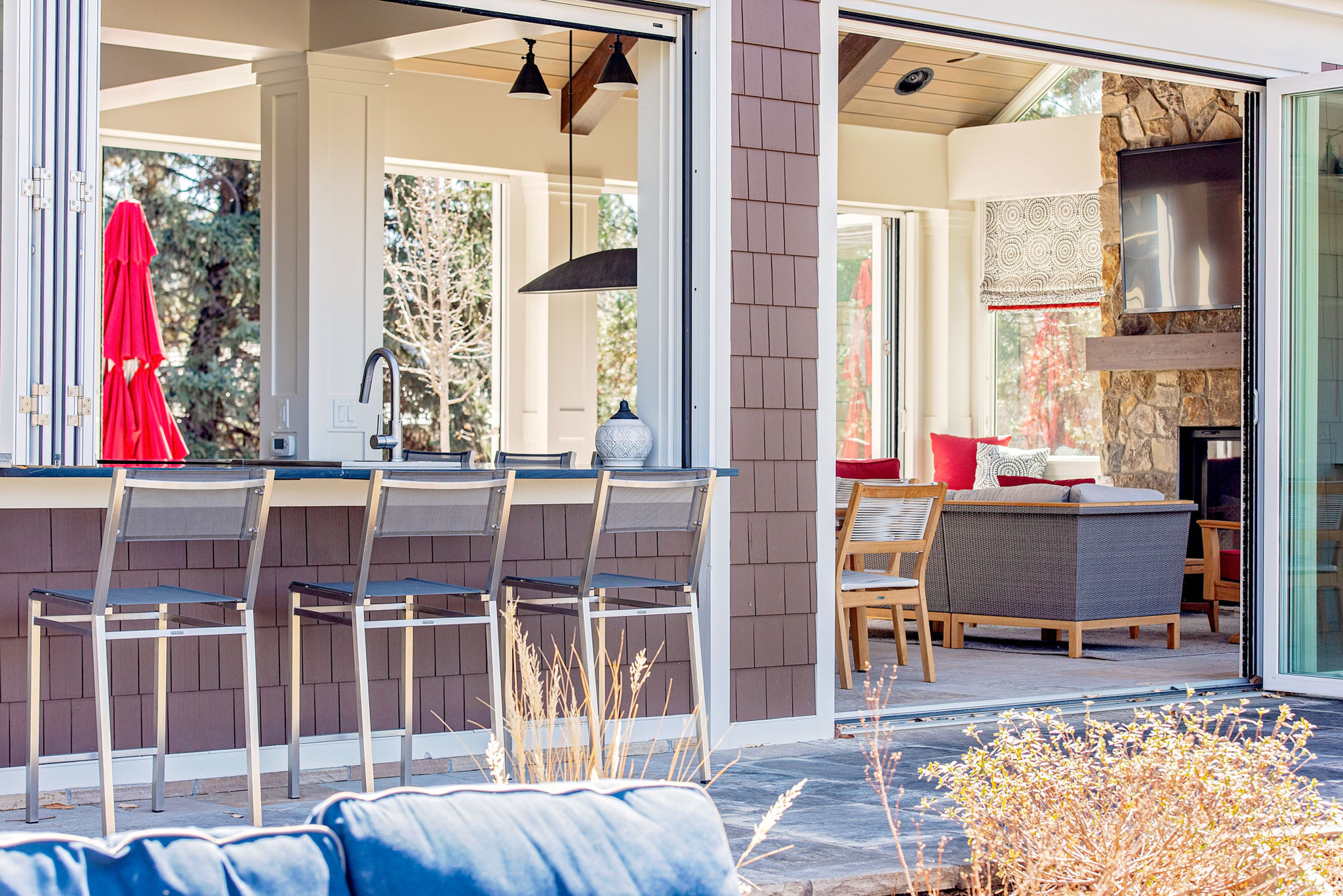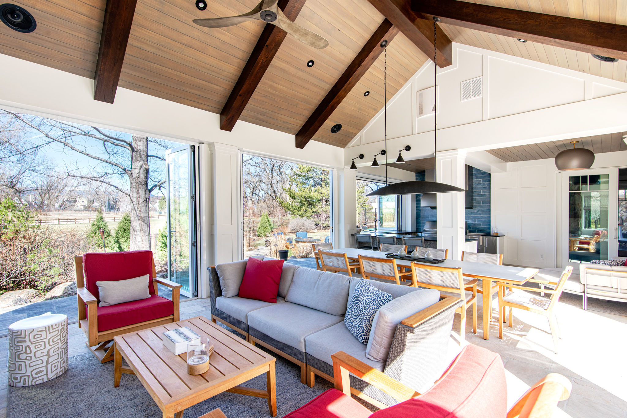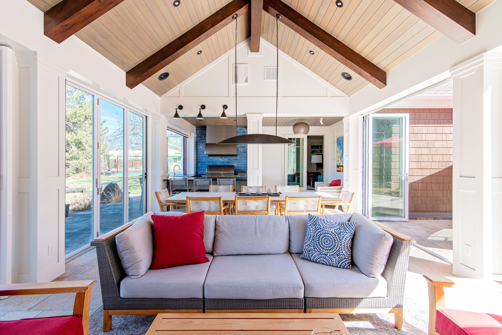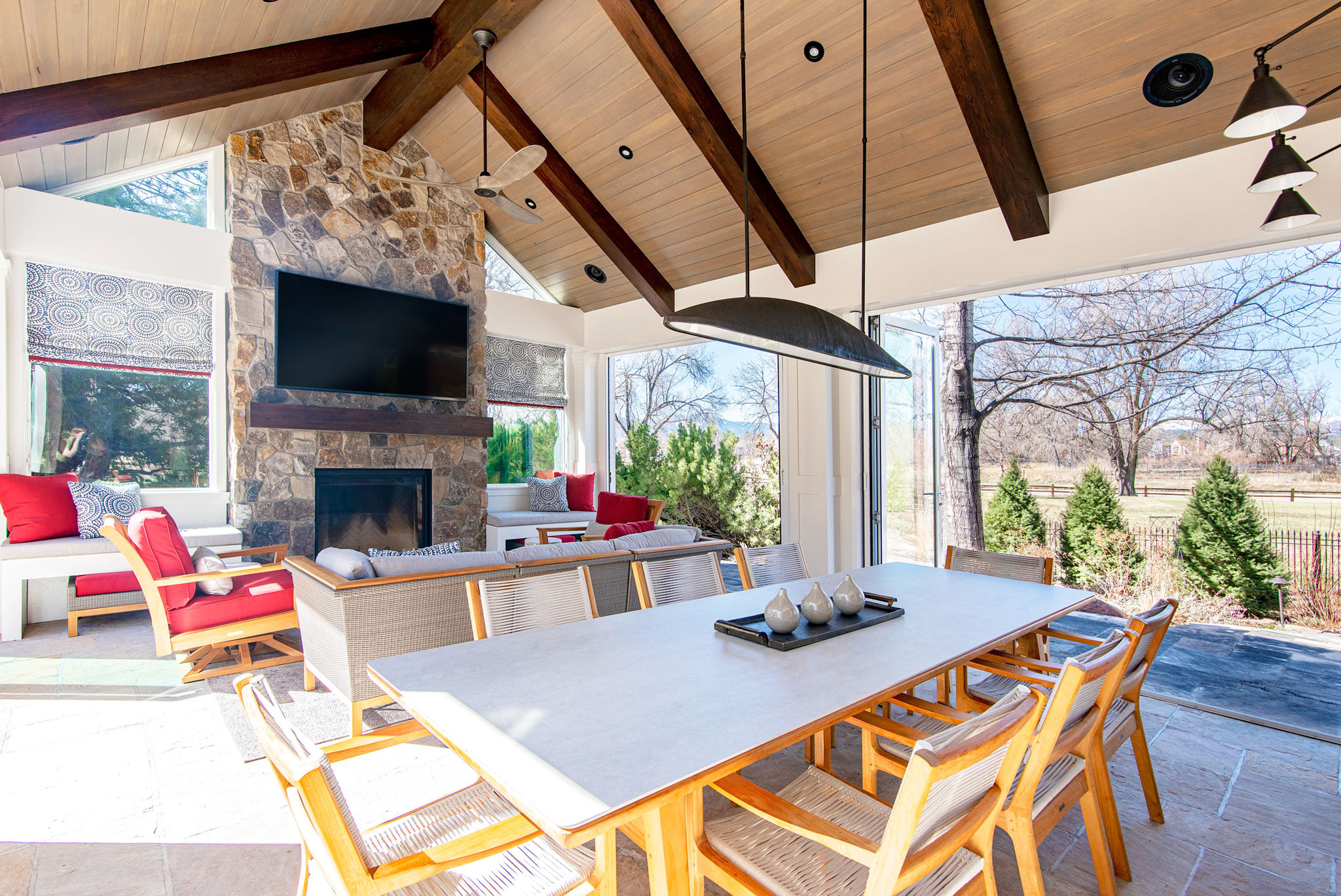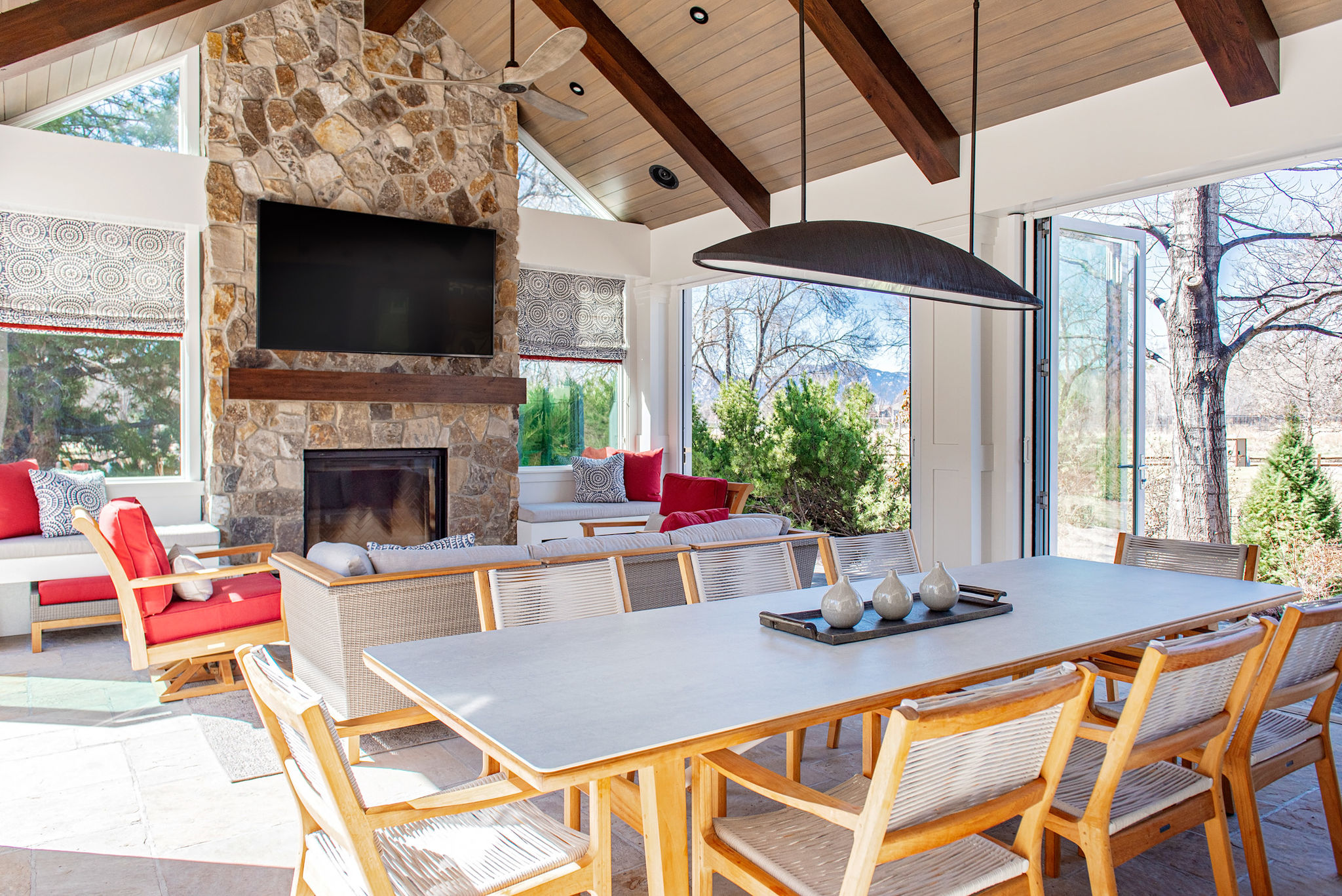 The stunning four-season room with tongue and groove ceilings, floor to ceiling LaCantina folding doors and full kitchen allow enjoyment of the outdoors any time of the year.