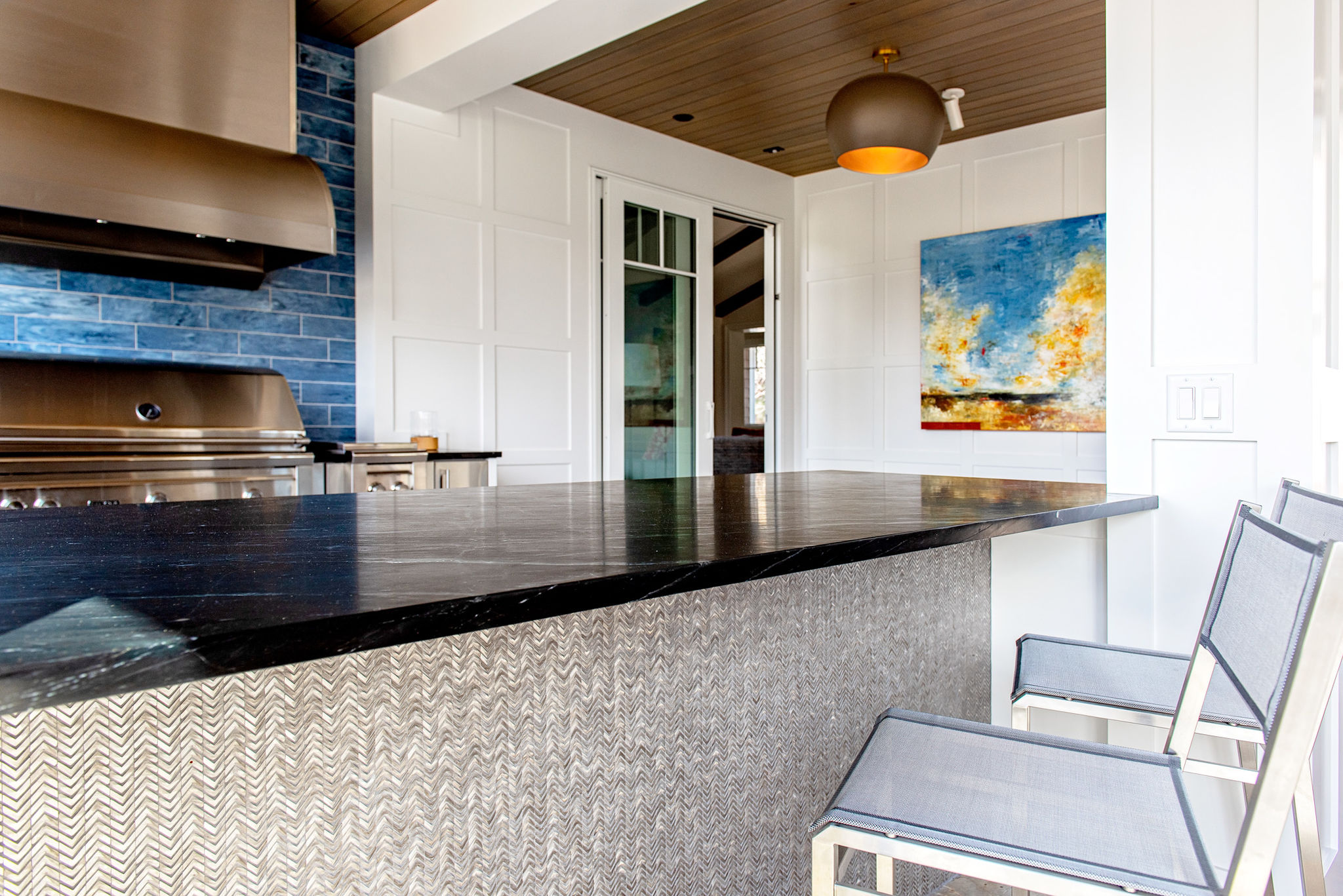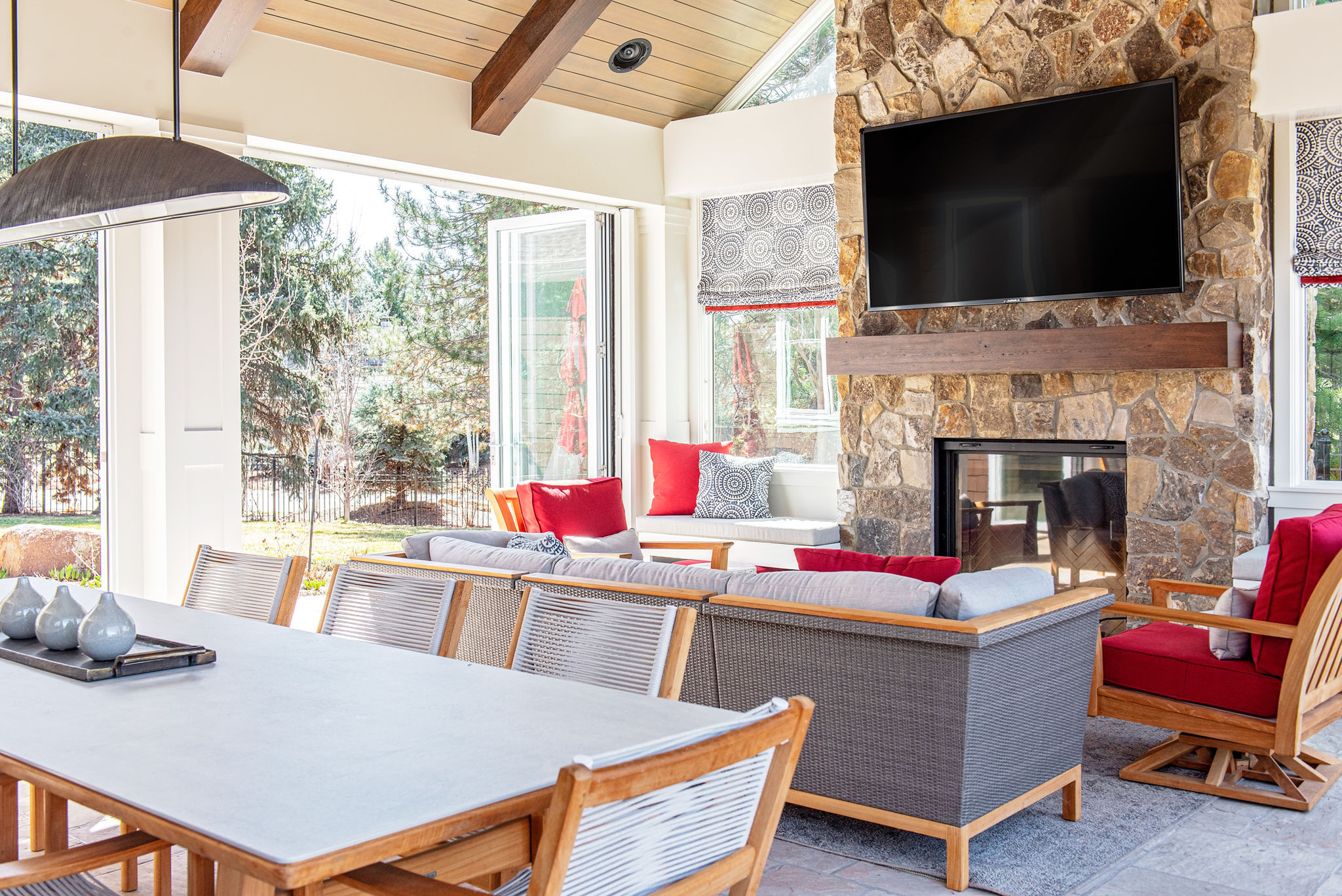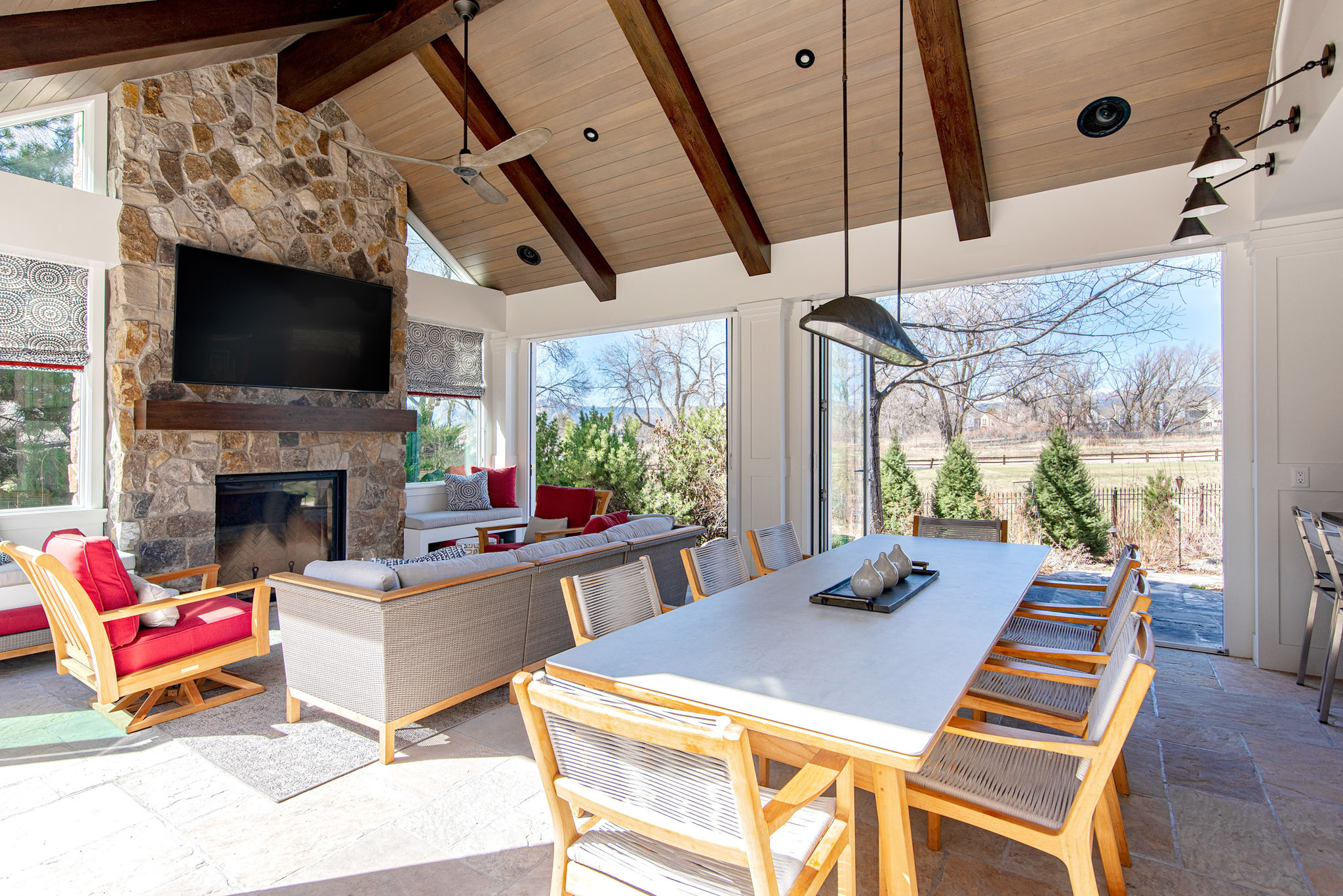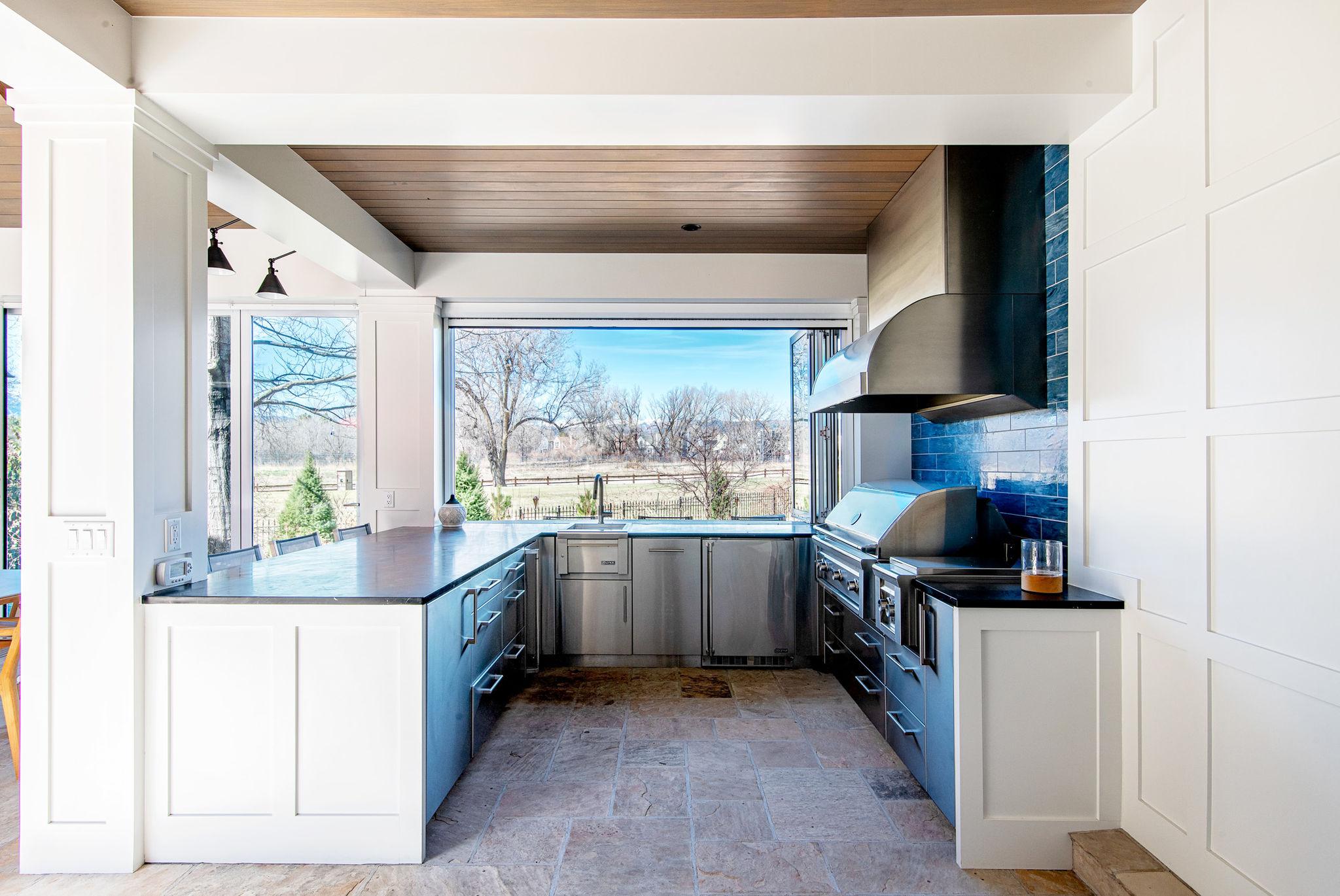 The stunning four-season room with tongue and groove ceilings, floor to ceiling LaCantina folding doors and full kitchen allow enjoyment of the outdoors any time of the year.