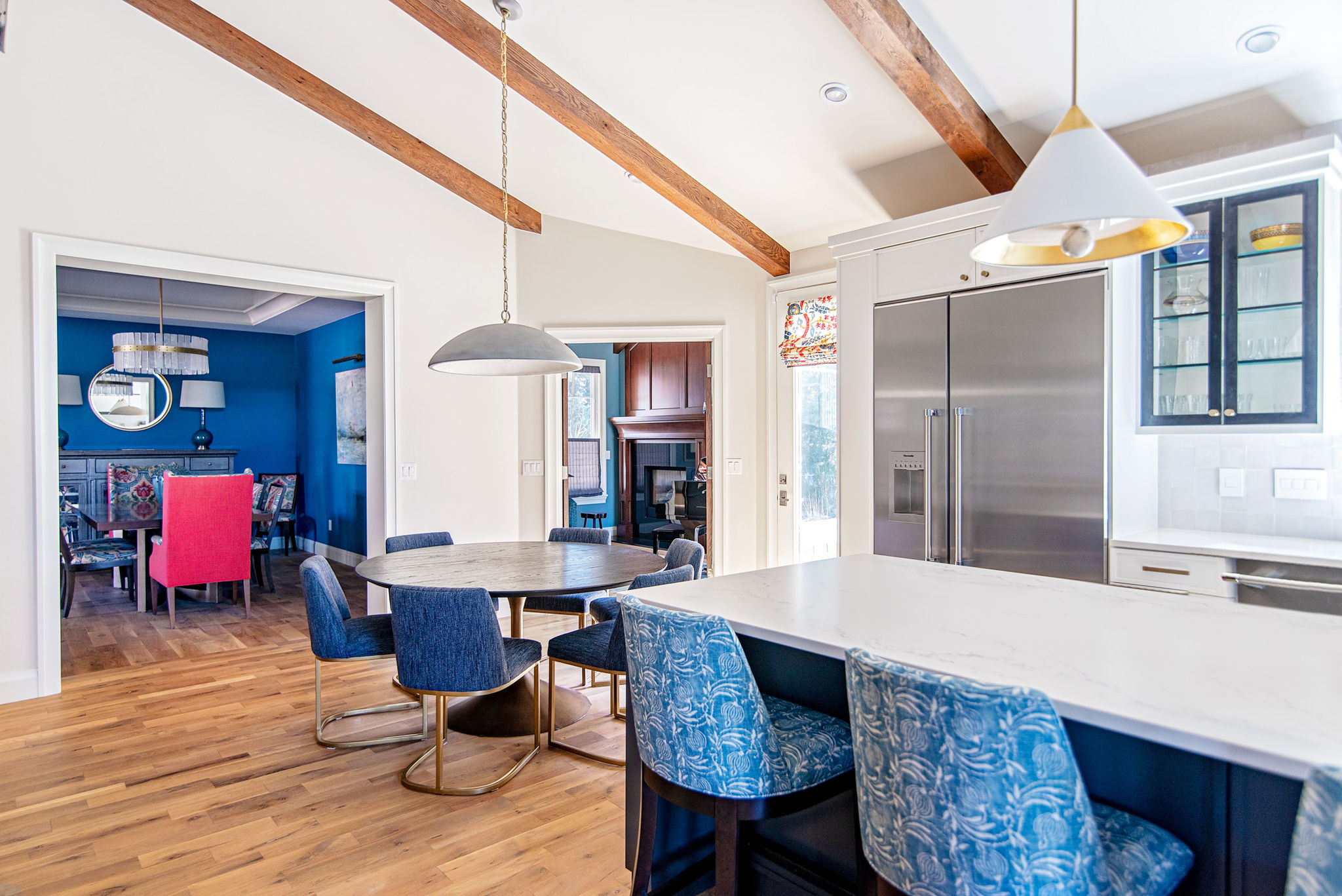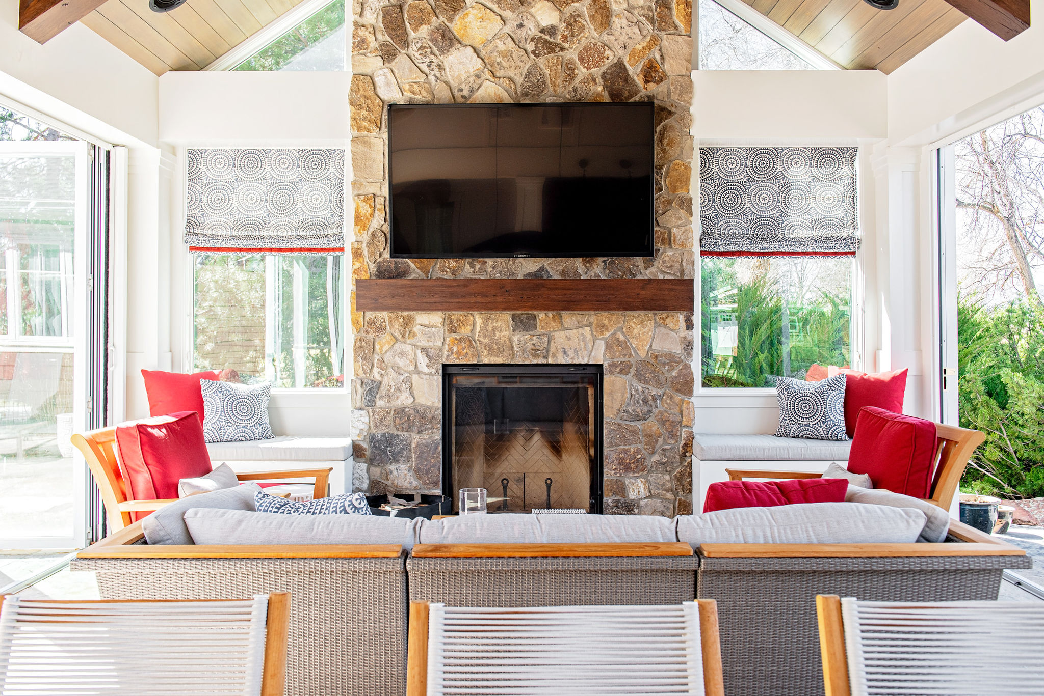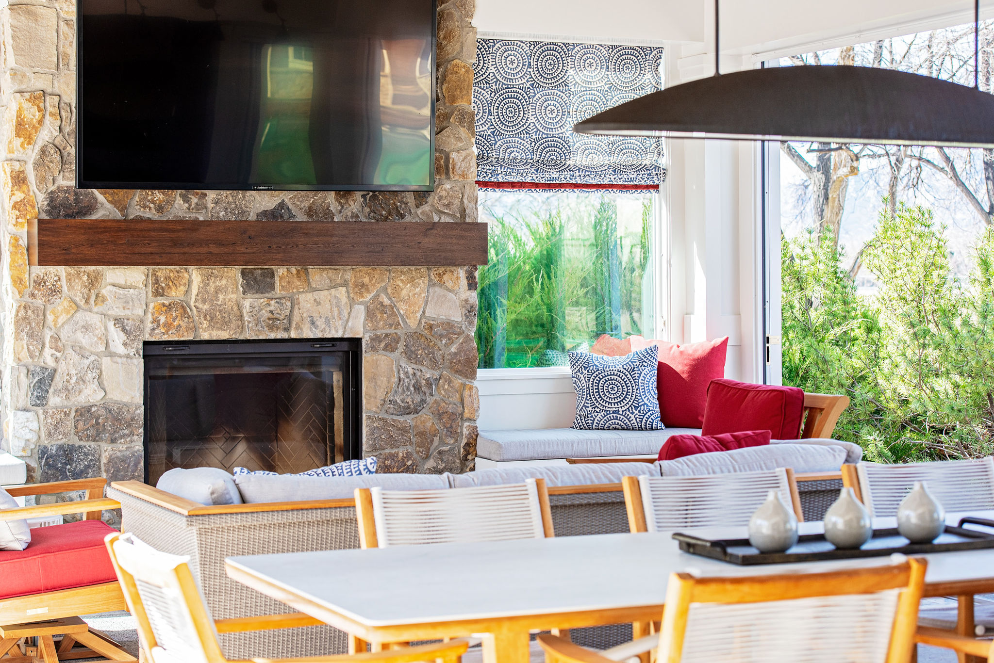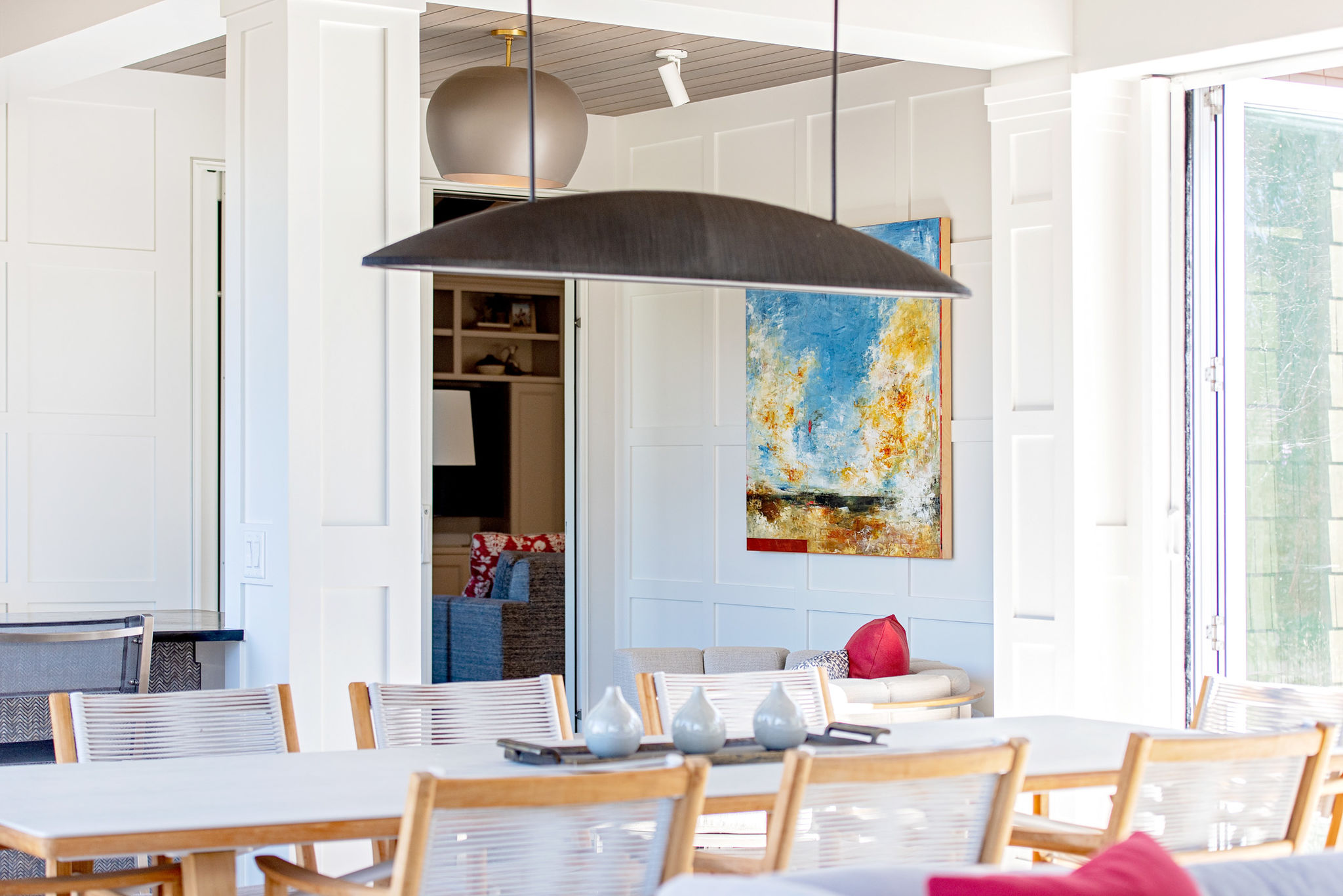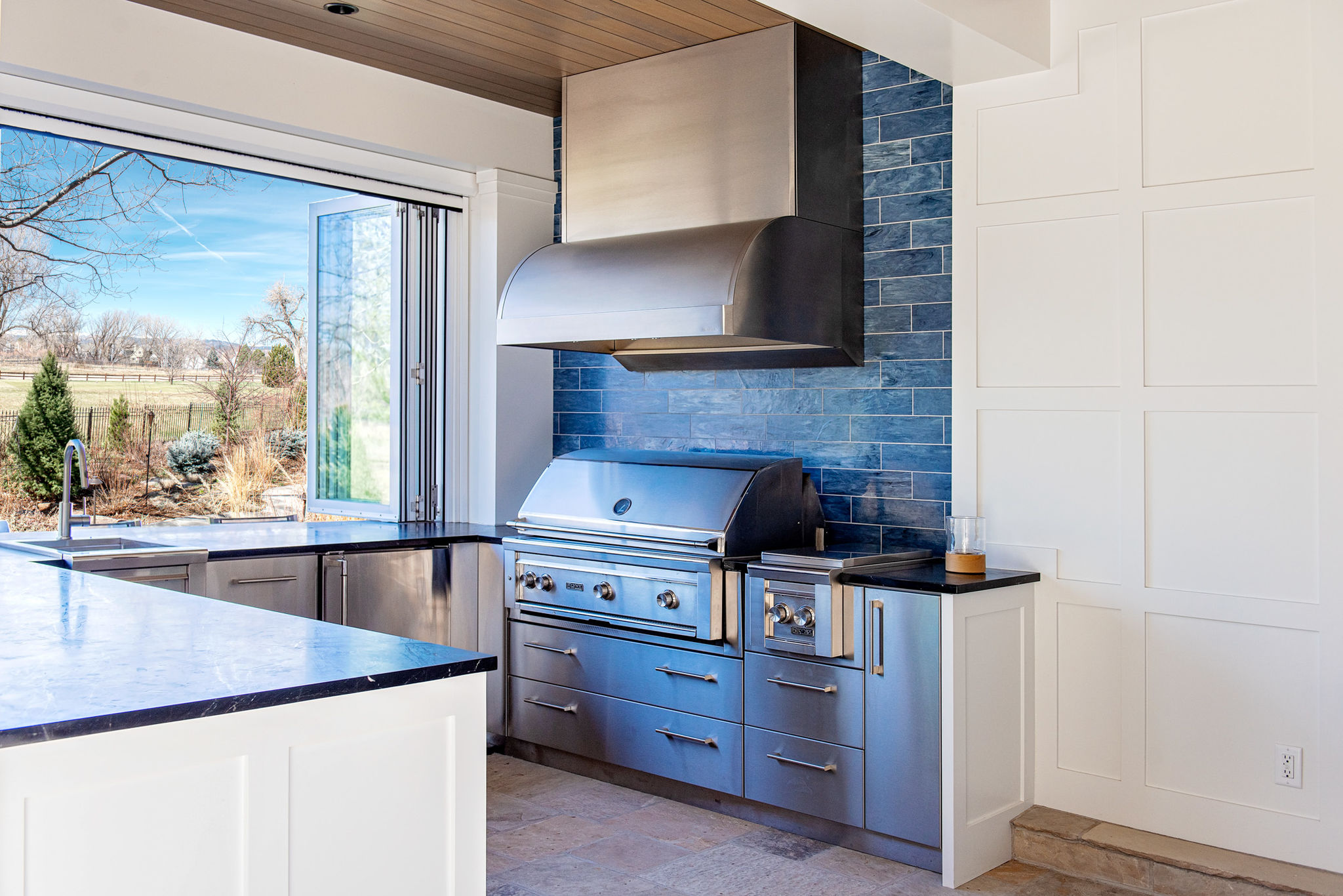 The stunning four-season room with tongue and groove ceilings, floor to ceiling LaCantina folding doors and full kitchen allow enjoyment of the outdoors any time of the year.