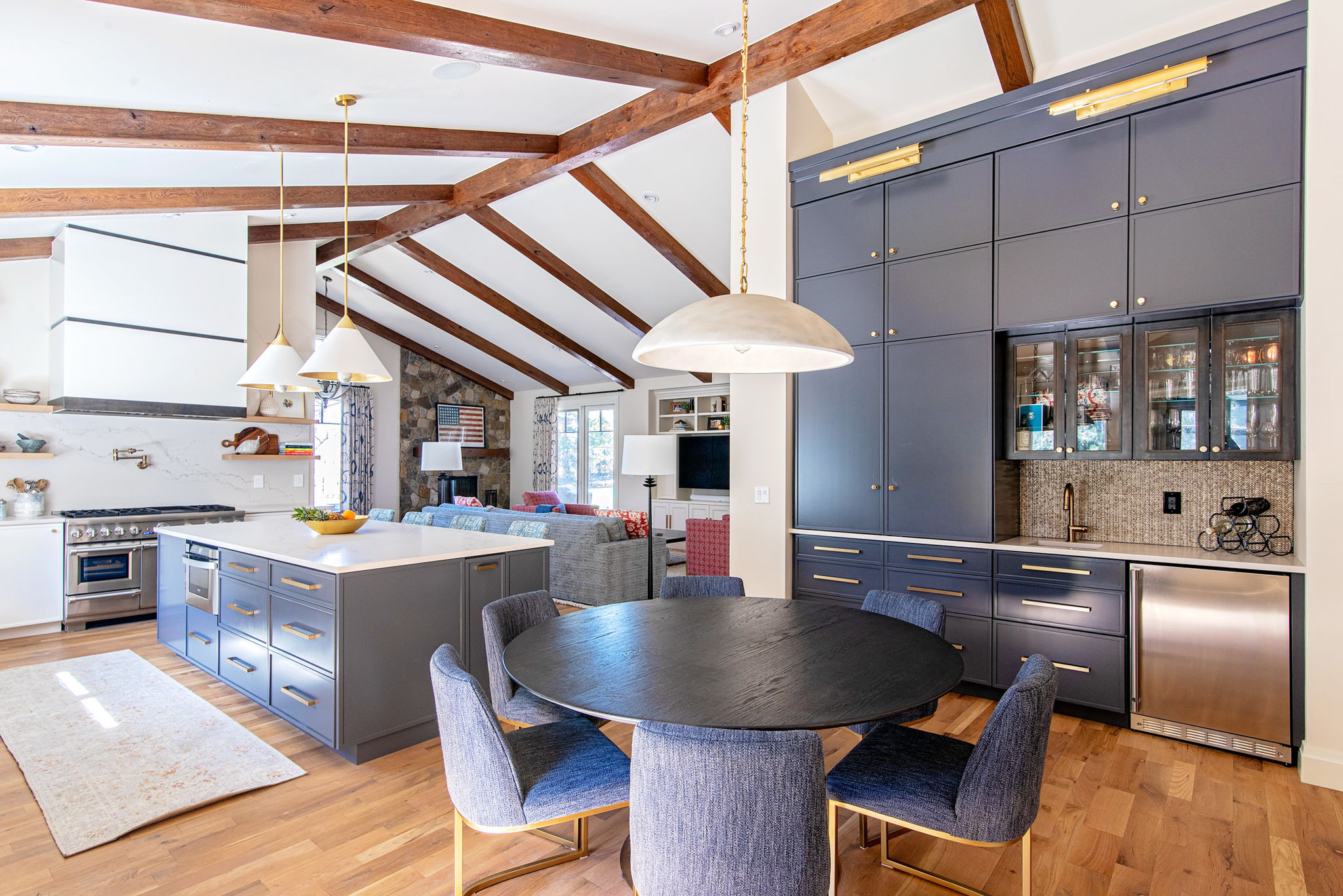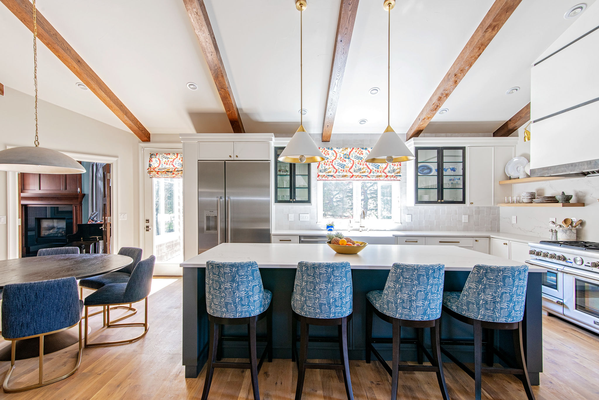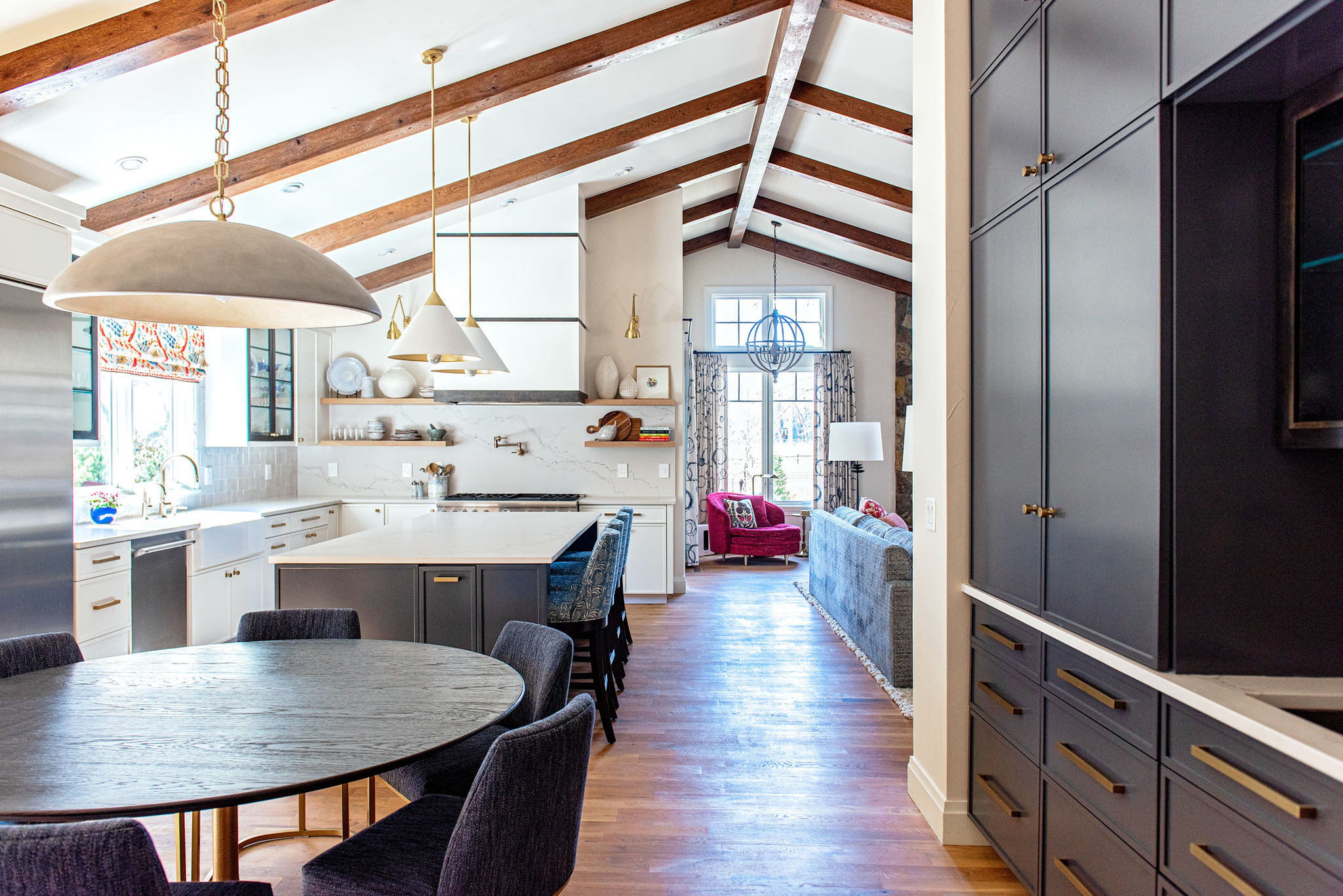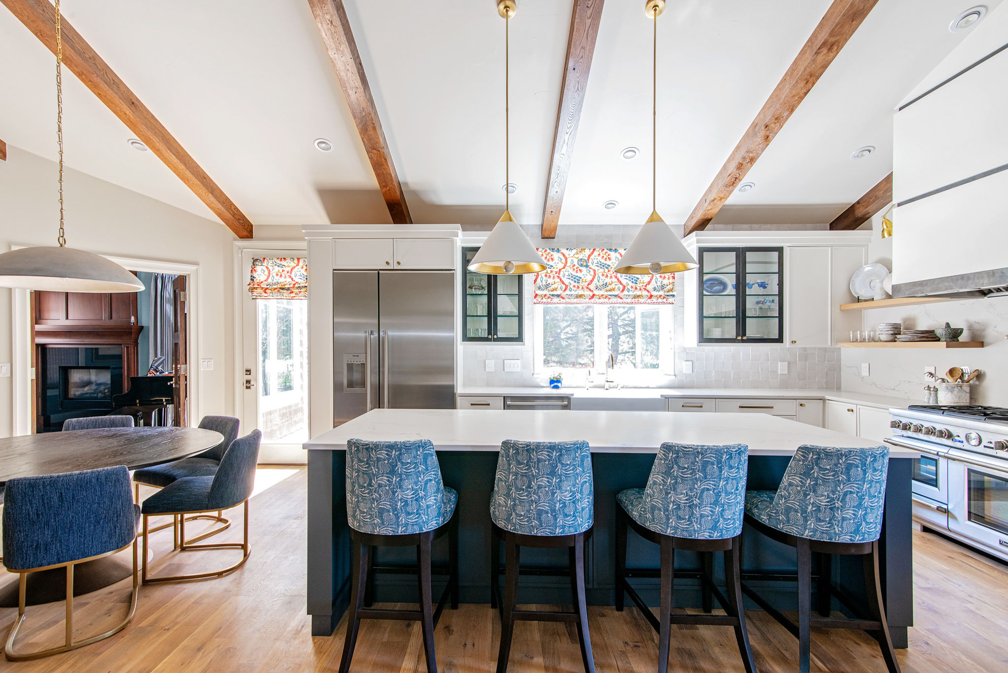 | Design Features | Eat-in Kitchen, Separate Dining Room, Cathedral/Vaulted Ceilings, Open Floor Plan, Walk-in Closet, Wet Bar, Wood Floors, Kitchen Island, Media Room, Theater, 9ft+ Ceilings, Beamed Ceilings |