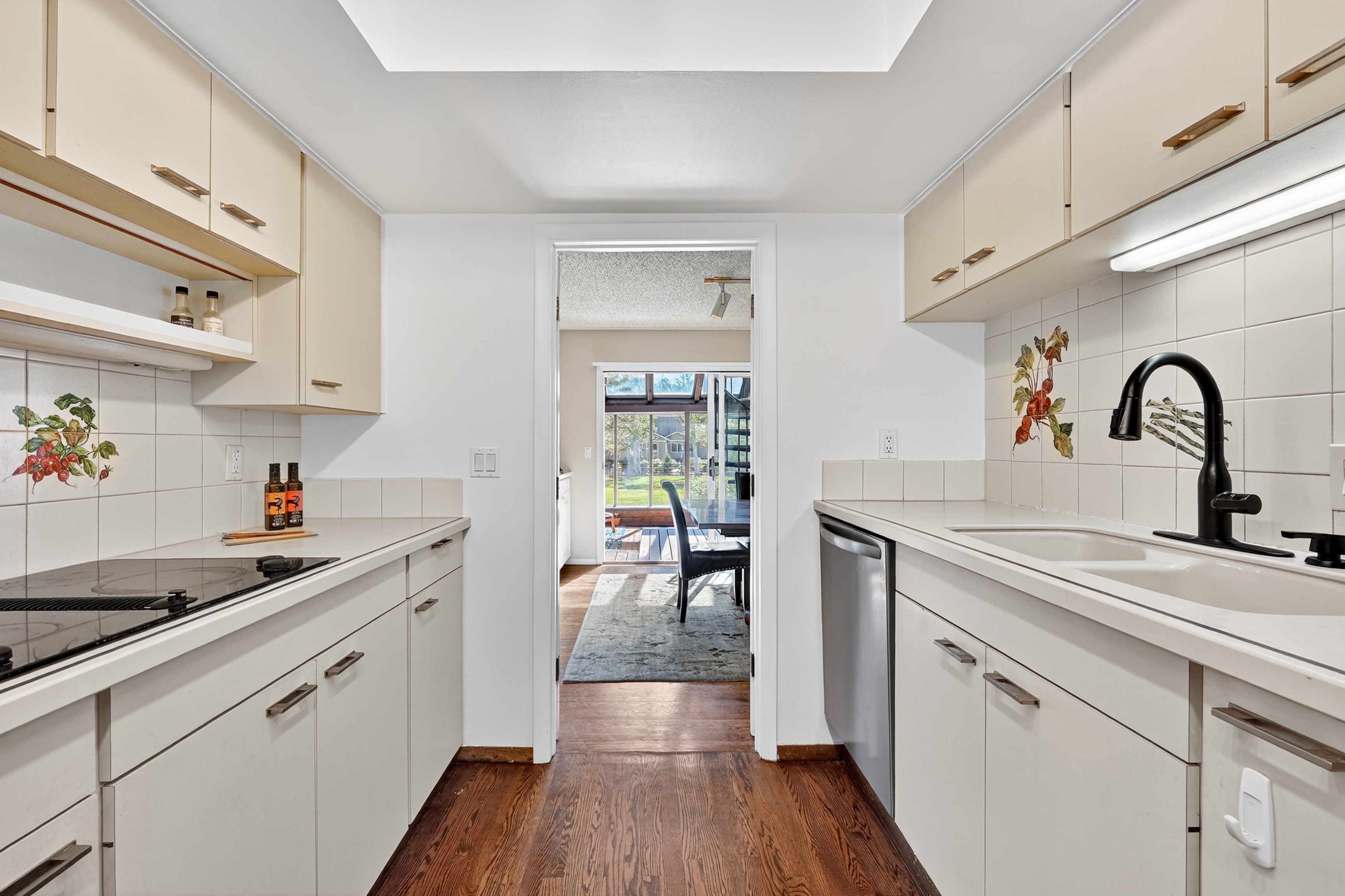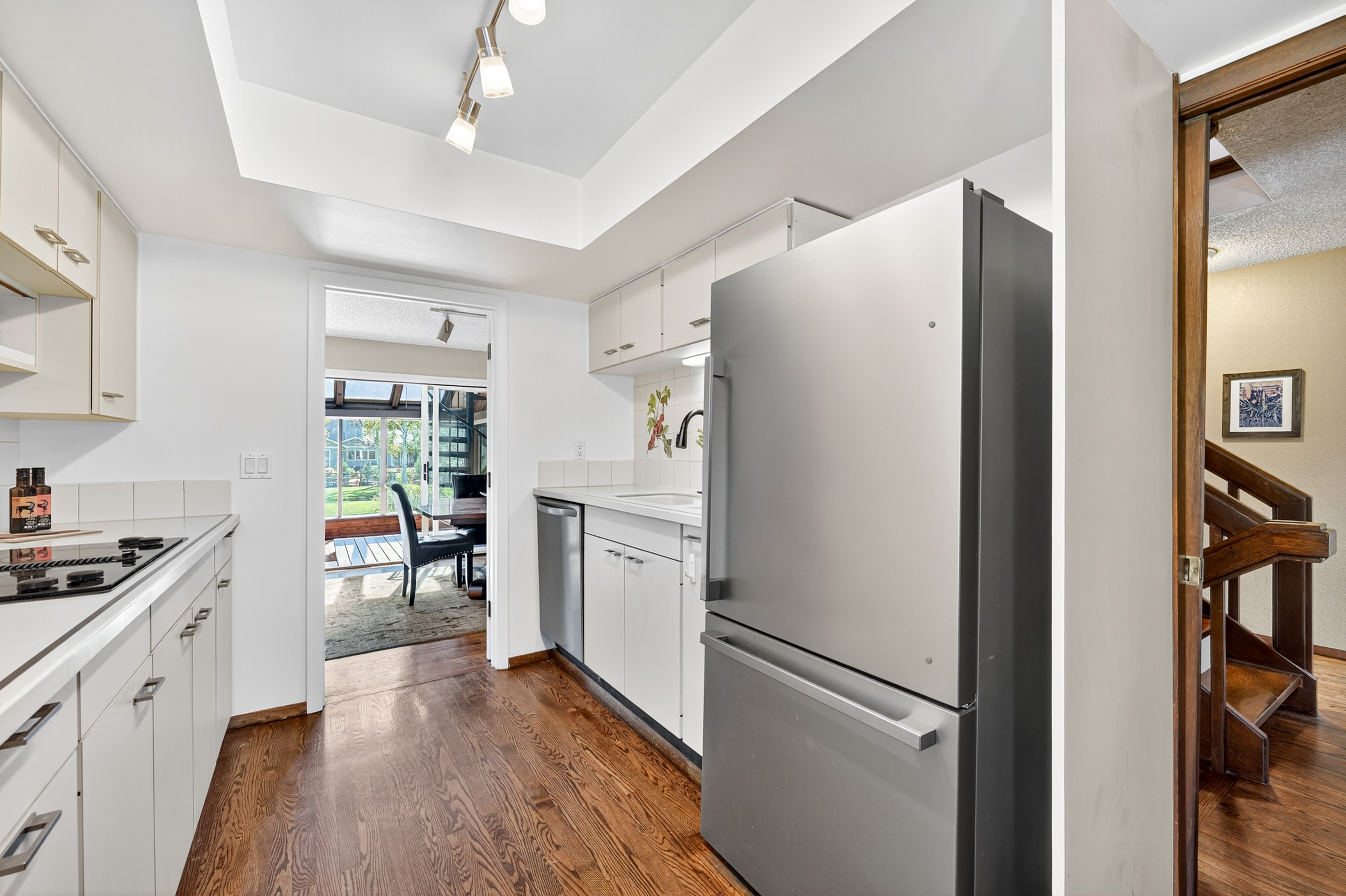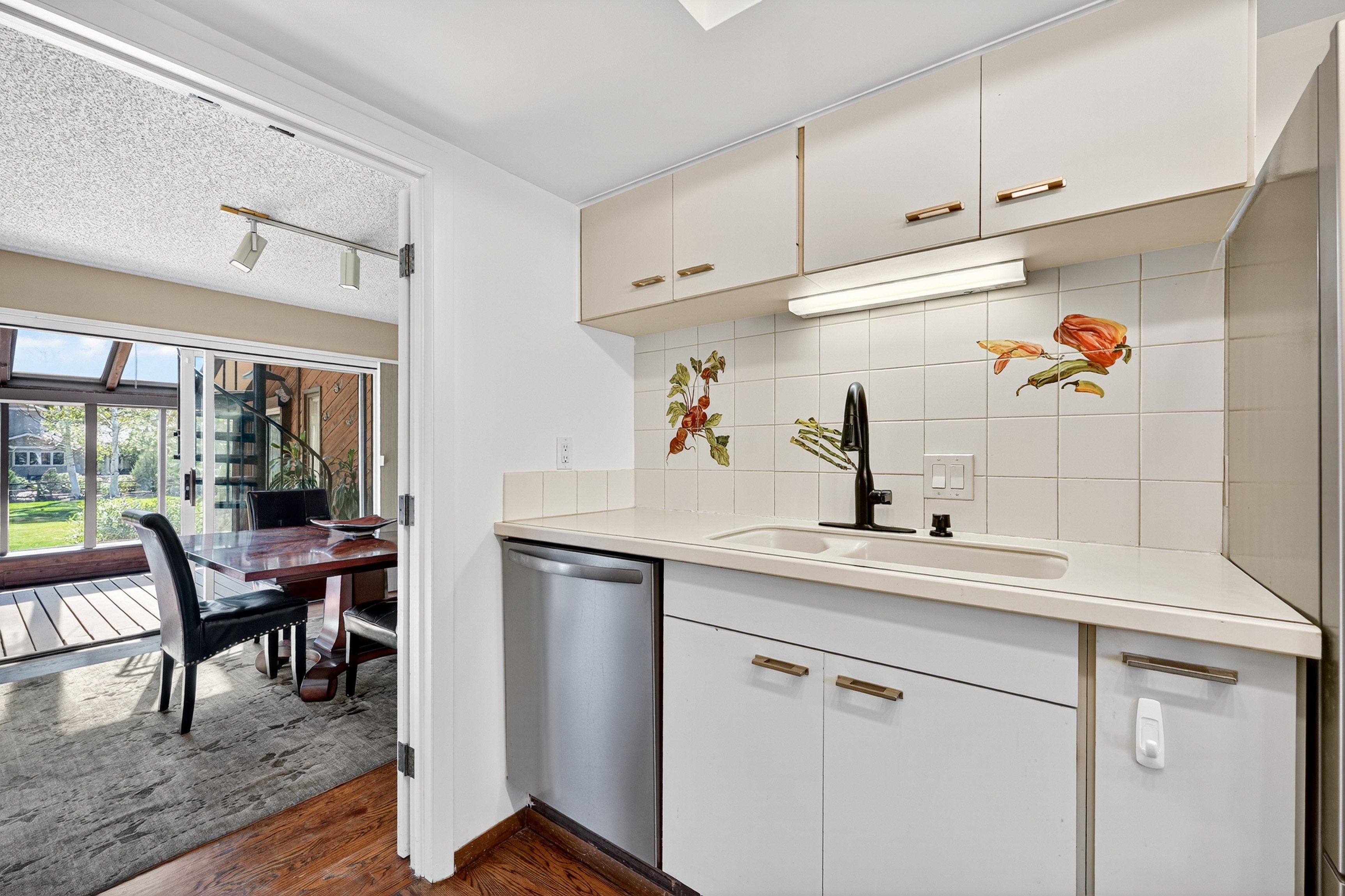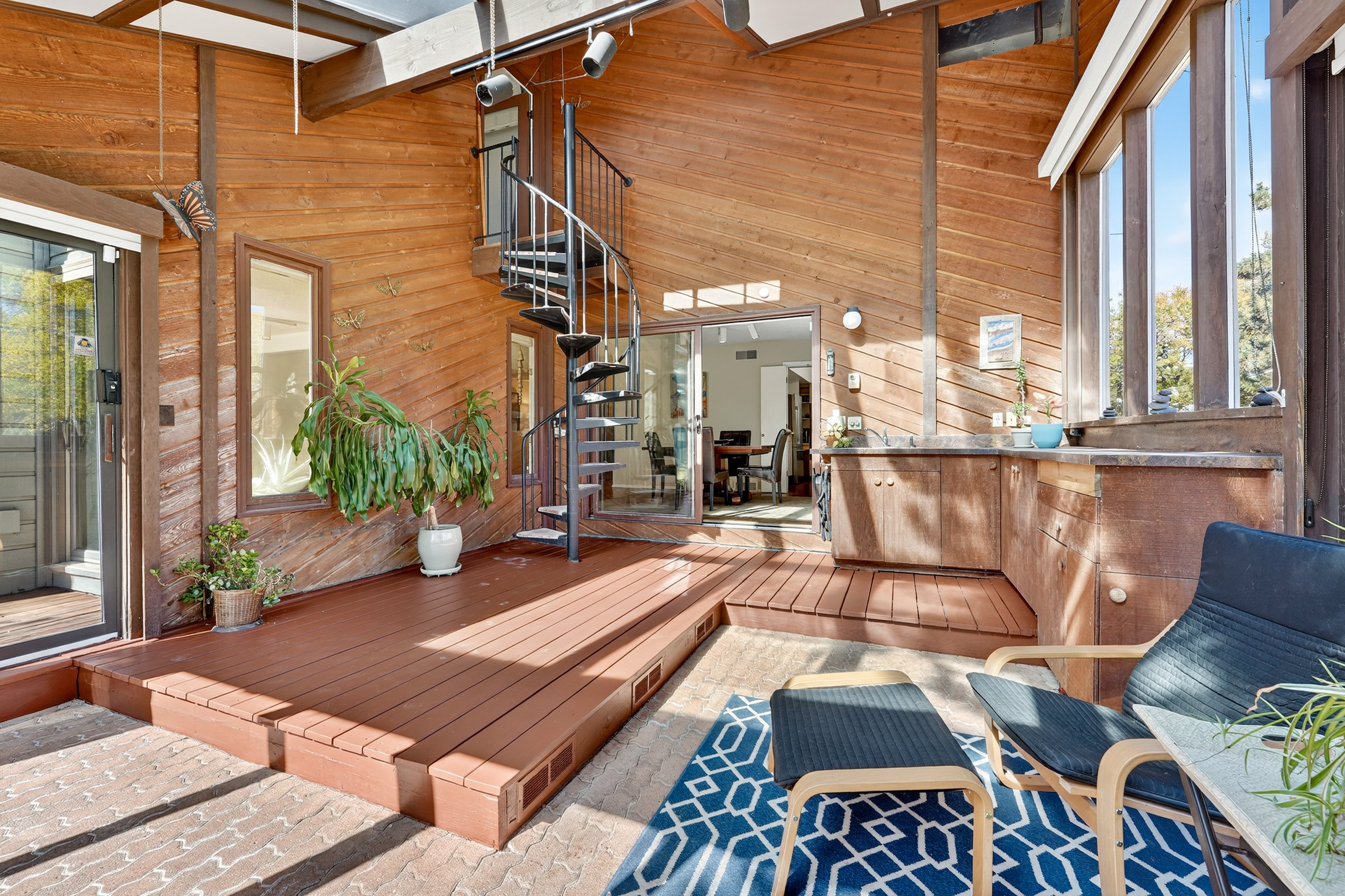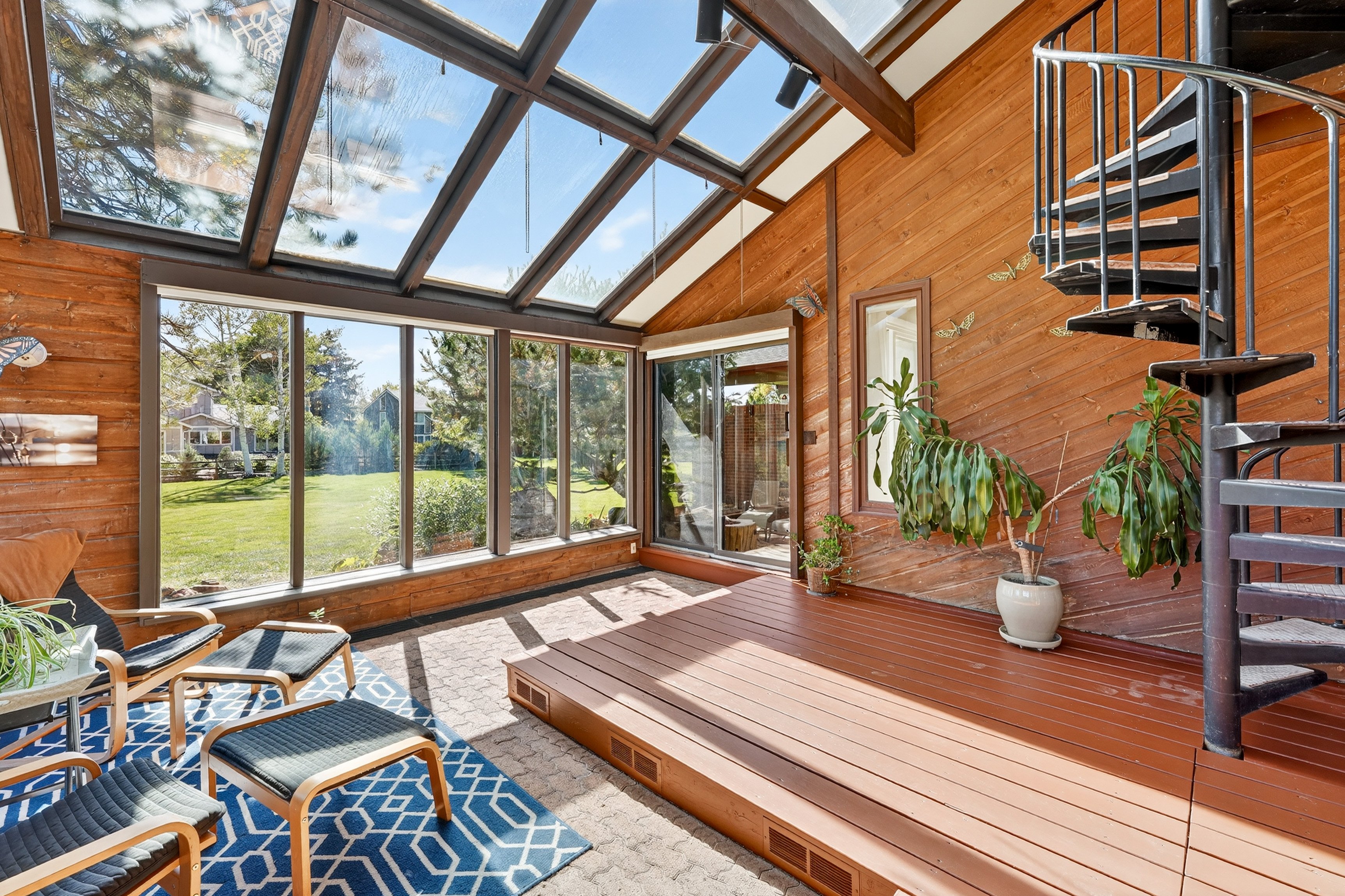 Step inside to discover light-filled interiors designed for comfort and versatility. Vaulted ceilings, skylights, and southern-facing Marvin windows flood the main living areas with natural light. Real hardwood floors, a Euro-style kitchen, and thoughtful updates-including newer roof (2019), energy saver furnace and water heater, and dual-thermostat airflow-regulated four-season sunroom-set the stage for both daily living and entertaining.