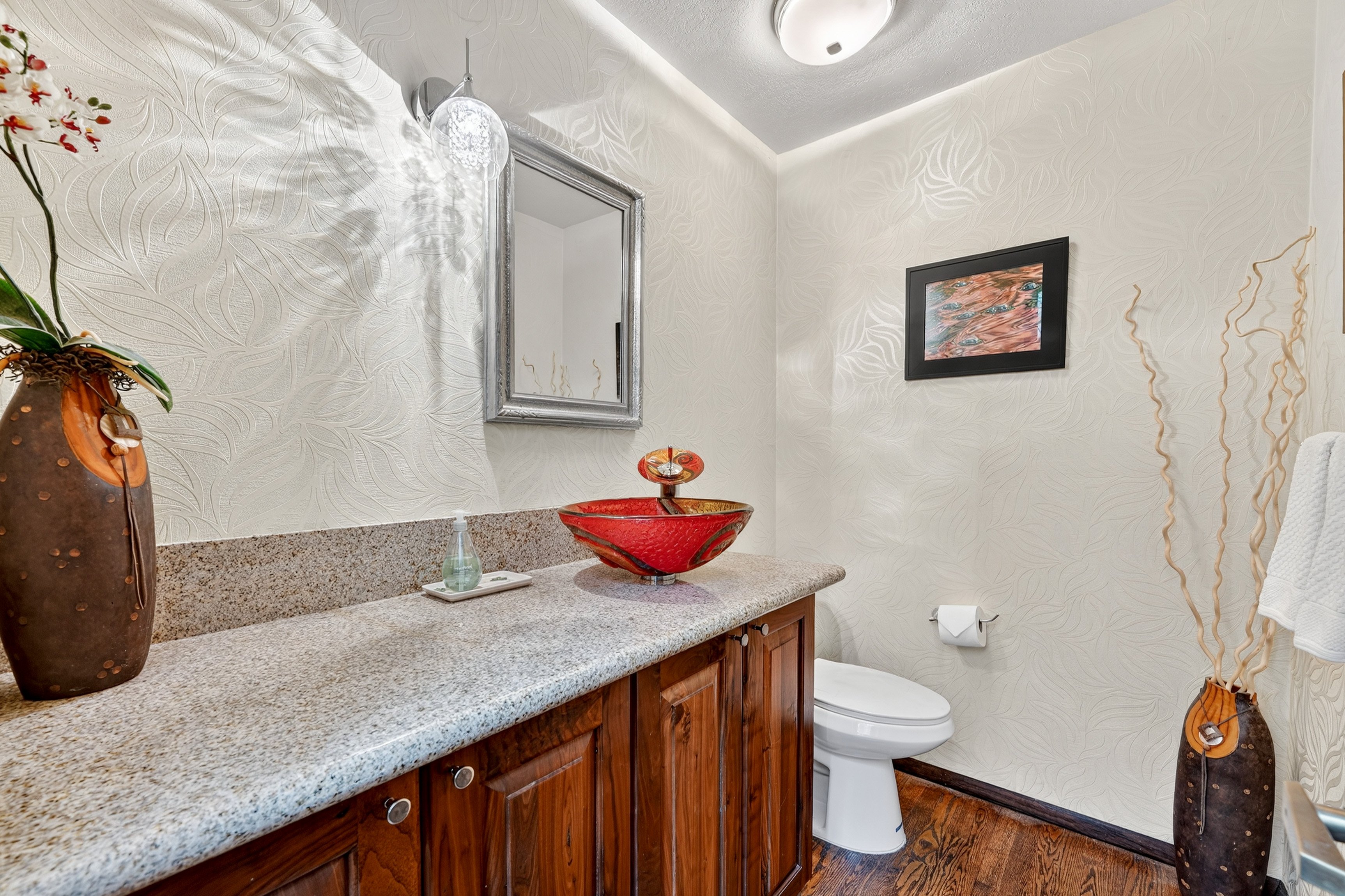 When cooking, eating, and drinking, you’ll always enjoy the purest water. An advanced filtration system has been installed into the kitchen sink. Stylish glass pendant light fixture shines down on your kitchen prep space. An extended island inspires great conversations while chopping vegetables or sipping tea.