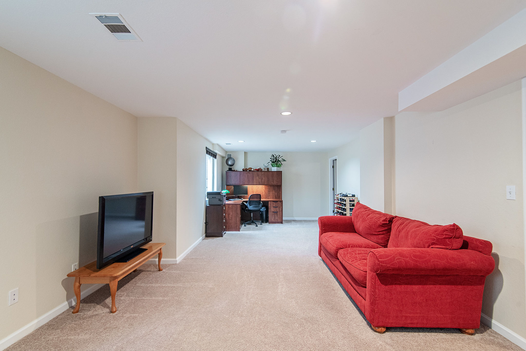 The 3 bedrooms on the upper level share a full bath. You'll enjoy working in the private main floor office. The basement has a TV room, bedroom, bath, gym, & storage. Park your golf cart in the 2+ car garage. Enjoy the pool, tennis courts, clubhouse, & playground where neighbors often gather.
