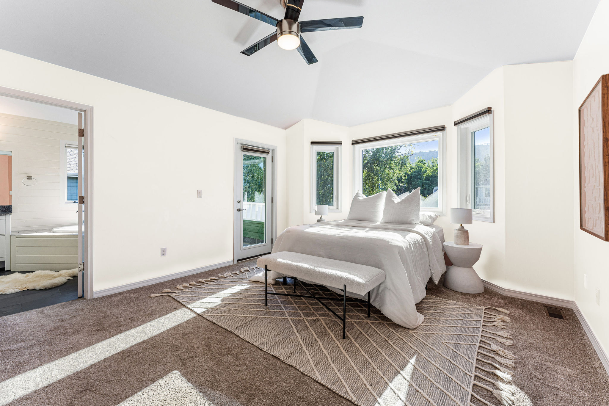 Ascend the staircase to discover the sanctuary of the freshly painted primary suite, where mountain views greet you each morning. Unwind in your private retreat, complete with a spa-like ensuite bathroom featuring a new soaking tub, a skylight with remote control, two walk-in closets, and a secluded balcony—an oasis of calm amidst the bustling city.